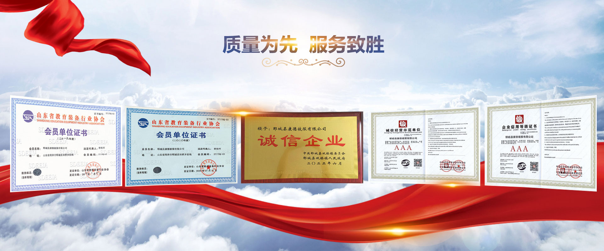 擁有各類證書營業執照、安全生產資質、環評資質、型式試 驗報告、管理體系認證、專利證書